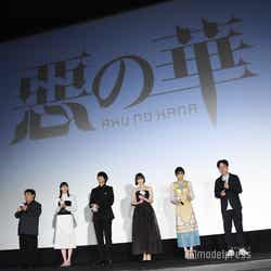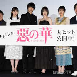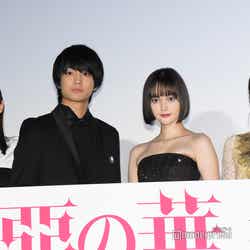 俳優の伊藤健太郎が28日、都内で行われた映画『惡の華』公開舞台挨拶に共演者の玉城ティナ、飯豊まりえ、秋田汐梨、メガホンをとった井口昇監督とともに出席した。