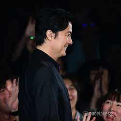 平野啓一郎氏の純文学小説の映画化である本作は、世界的なクラシックギタリストでありながら自分の音楽を見失っている蒔野聡史(福山)と、パリの通信社で働くジャーナリストの小峰洋子が、惹かれ合い、すれ違っていく6年の日々を描く。伊勢谷が演じるのは、洋子の婚約者・リチャード新藤だ。福山は、本作が原作者の平野氏から絶賛を受けたことに話が及ぶと、平野氏や石田と一緒に試写を鑑賞した際のエピソードを紹介。