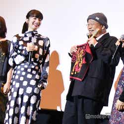 さらに、イベントでは小松、片岡、小林の女性陣3人から、鶴瓶と平山監督に、ニット帽、孫の手、腹巻きがプレゼントされるサプライズがあった。小松からニット帽を被せてもらった鶴瓶は笑顔を弾けさせ、ご機嫌の様子だった。(modelpress編集部)