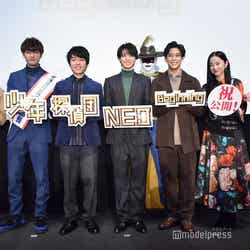 俳優の高杉真宙が26日、都内で行われた映画『超・少年探偵団NEO-Beginning-』の公開記念舞台挨拶に板垣瑞生(M!LK)、佐野岳、堀田真由、長村航希、前田旺志郎、芦塚慎太郎監督と共に参加した。