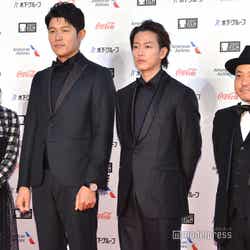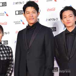 佐藤は、共演者の鈴木、松岡、メガホンをとった白石和彌監督とともに登場した。端正な顔立ちが際立つオールバックヘアで、蝶ネクタイにオールブラックのタキシードというクールな着こなしを披露。鈴木も同様にオールブラックのタキシードでフォーマルなスタイル、松岡はギンガムチェック×ブラックのドレスで可憐に美脚をみせた。観客からは男女問わず「たけるくん~!」と呼ぶ声が飛び交うなど、会場を一気に虜にしていた。