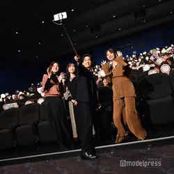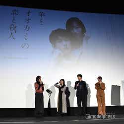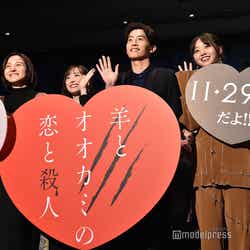映画『羊とオオカミの恋と殺人』の初日舞台挨拶が29日、都内で行われ、W主演の杉野遥亮と福原遥、共演の江野沢愛美、メガホンをとった朝倉加葉子監督が登壇した。