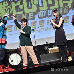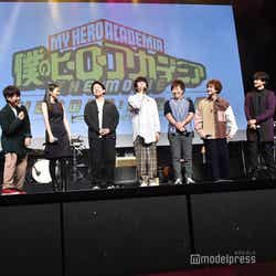 また、イベントには主題歌を担当するsumikaが登場し、主題歌の「ハイヤーグラウンド」を披露。「ヒロアカの主題をできるというのは一生に一度だと思って覚悟を決めて作った。バンドを組んだときを思い出して、原点に立ち返って作りました」と楽曲に込めた思いを語り、熱いステージを届けた。
