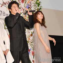岡崎は、シースルーのロングドレスに身を包み登場。「今日こうして初めて皆さんに届くんだなと思うと、すごく嬉しい気持ちとドキドキした気持ちでいっぱいです」と挨拶した。田中との共演について問われた岡崎は、登壇後持ち前の明るさで会場を盛り上げていた田中を「初日からこのようにフランクに優しい方で」と表現し、「現場に入っても緊張することなくリラックスしてその場にいれたのは田中さんのおかげだなと思います」と絶賛。これを聞いた田中は「よせやい」と照れを隠しきれない様子を見せ、会場は和やかな雰囲気に包まれた。