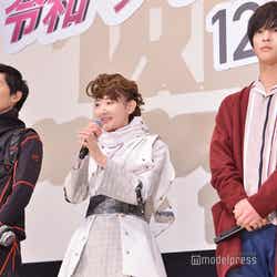 そして、フォトセッションでは劇中で山本耕史演じる飛電其雄・仮面ライダー1型のキャラクターが登場。キャスト陣と共に、ゼロワンカラーの黄色と、ジオウカラーのピンクの祝砲とともに映画完成をお祝いした。(modelpress編集部)