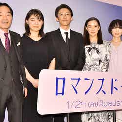 俳優の高橋一生、女優の蒼井優が18日、都内にて開催された映画「ロマンスドール」(2020年1月24日公開)の完成披露試写会に、出演の三浦透子、きたろう、タナダユキ監督とともに出席した。