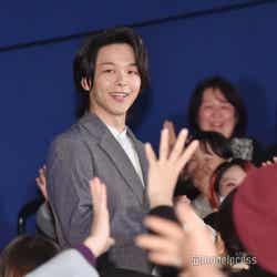 俳優の中村倫也が23日、都内で行われた映画「屍人荘の殺人」(公開中)の大ヒット舞台挨拶に主演の神木隆之介、共演の浜辺美波とともに出席した。