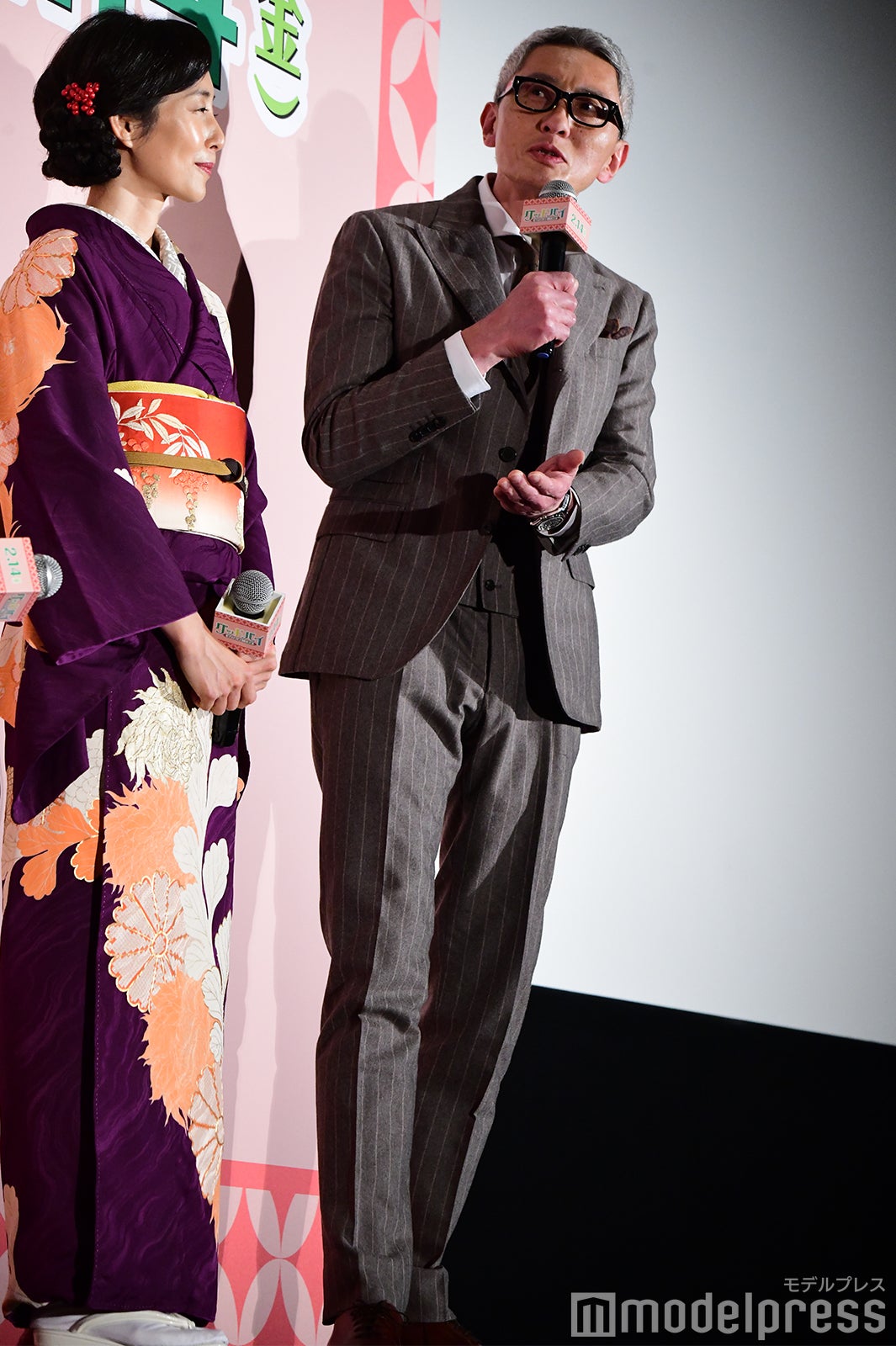 本作は、太宰治による未完の遺作を、ケラリーノ・サンドロヴィッチが独自の視点で完成させた戯曲「グッドバイ」の映画化。周囲の女たちになぜか好かれるダメ男・田島周二(大泉)が、ガサツで小汚いが実は美人な永井キヌ子(小池)と嘘夫婦になり、クールな女医・大櫛加代(水川)や、挿絵画家の水原ケイ子(橋本)らと織りなすドラマを描く。この日は共演の緒川たまき、木村多江、濱田岳、松重豊、成島出監督も出席した。大泉はモテ男役について「宣伝の時期になって、やたらとモテ男みたいなキャッチコピーが、やたら言われるんですけど…オファーされたときは、そんなにモテ男を強調されて言われなかったので、あんまり意識はしなかった」と振り返り「映画を見てもらえばわかると思うんですけど、あんまりモテてるシーンってないんですよ」とポツリ。