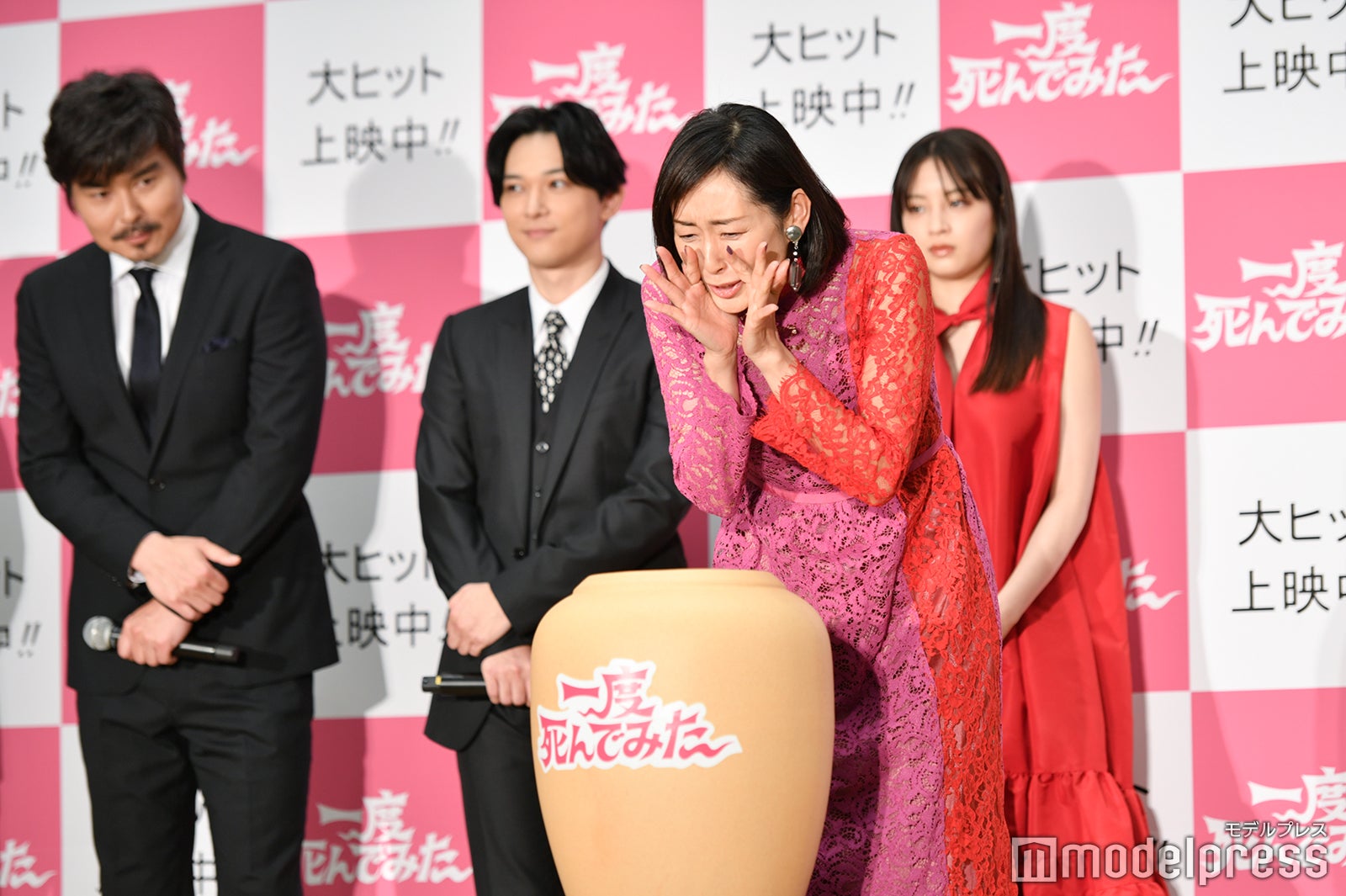 同作は、いまだ反抗期継続中のこじらせ女子大生・野畑七瀬(広瀬)が、「2日間だけ死んじゃう薬」を服用して仮死状態になってしまった大嫌いな父親・計(堤)を、生き返る前に火葬されるピンチから救うべく、存在感が無さ過ぎて“ゴースト”と呼ばれている計の部下・松岡(吉沢)と奔走するハートフルコメディ。この日のイベントでは、作品にちなんで登壇者が‟シャウト壺”に向かって日々感じている些細な不満を壺に向かってシャウトすることになった。その中で「あごが痛てぇ」と季節柄の悩みも踏まえて叫んだ吉沢。その理由を説明する横で、小澤から「刈り上げかわいいですね」と褒められ、同じく刈り上げに高評価を示していたリリーから「後ろ見せてあげて」と指示を受けた際には、報道陣に刈り上げがしっかり見えるように決めポーズ。これにはカメラマンたちがこぞってシャッターをきっていた。(modelpress編集部)