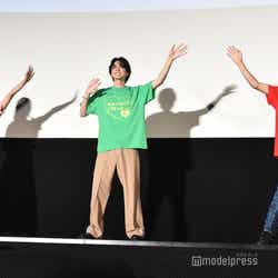 イベントには、共演の神尾楓珠、山口乃々華(E-girls)、富田望生、伊藤あさひ、奥野壮(男劇団 青山表参道X)、メガホンをとった平沼紀久監督も出席。スーパーイケメン4人組の1人・サブカル系先輩の六見遊馬役を演じる吉野は、平沼監督のアドバイスで本番前から私生活でも六見というキャラクターを意識して生活した結果、役作りは苦労しなかったそうで「本番ではナチュラルに演じられたので、苦労はなかったですね」といい、「撮影のときに楓珠から『六見やん』って言われることが多かったですね」とニッコリ。これに神尾は「共演は2回目なんですけど、前と全然違って、動きがゆっくりでした」と返した。スーパーイケメン4人組の1人・スポーツ系同級生の五十嵐祐輔役を演じる神尾は「4人の個性が立っていてほしいなと思っていて、1番クセがないのが僕の役なので、周りと対比して自分の立ち位置を見つけるようにしていました」と役作りについて紹介した。