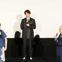 冒頭の挨拶で長澤は、「今日この日を迎えることができ、安心したという気持ちと、感慨深い想いでいっぱいです。2か月半くらい遅れての公開になりましたが、延期になってからも、『この作品を観たい!』という士気が高まっている気がして、ファンがたくさんいてくれることを感じ、なんだか嬉しい気持ちでした」と感謝の意持ちを伝えた。東出は「撮影を振り返って、本当に楽しい現場でした。本日はトークの中でその雰囲気を皆さんに伝えられればと思っています」と気持ちを話し、小日向は「たくさん見ていただくことで、『また来年も(新作が公開)…』ということになりますので、是非友達に宣伝をよろしくお願いします!」と笑いを誘った。