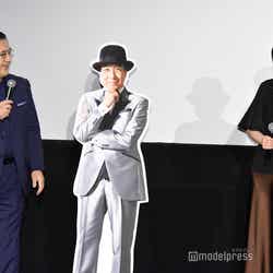 映画『コンフィデンスマンJP プリンセス編』(公開中)の大ヒット舞台挨拶が13日、都内の劇場で行われ、長澤まさみ、東出昌大、小手伸也、関水渚、ジャッキー・チェンのモノマネ芸人のジャッキーちゃん、メガホンをとった田中亮監督が出席。撮影の都合で会場には来られなかった小日向文世はリモートで出演した。