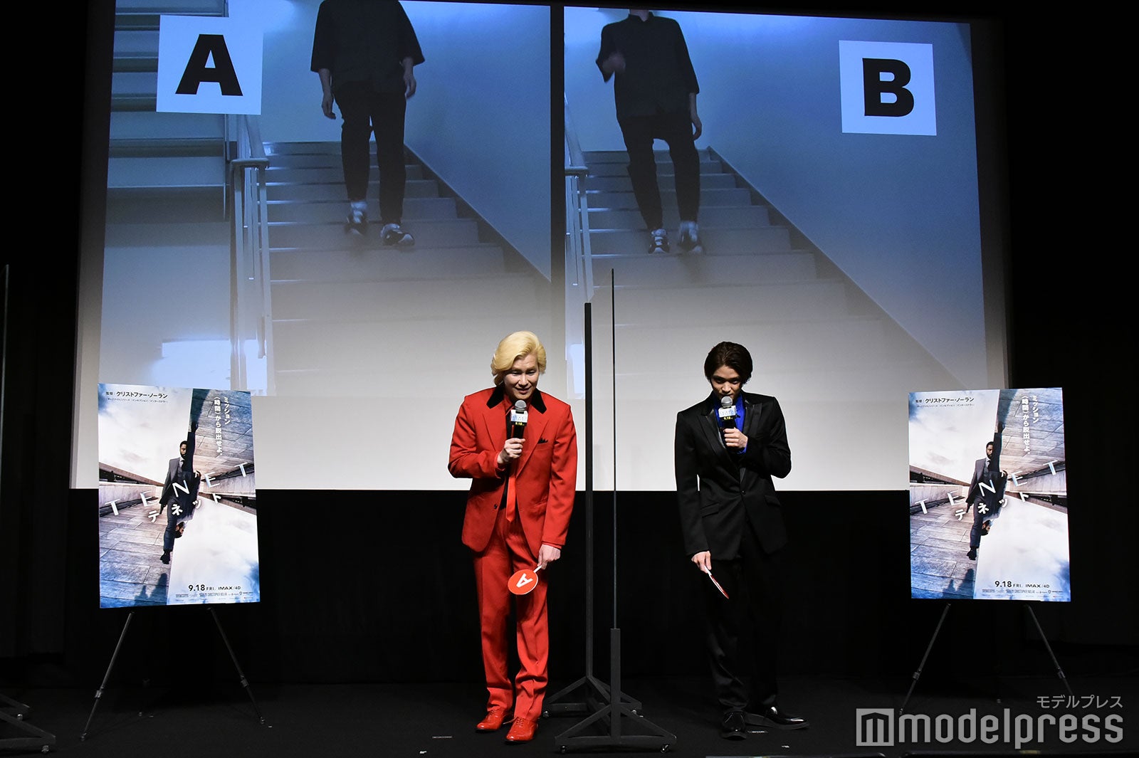 同じくノーラン監督のファンであるカズレーザーは、最新作を「『バック・トゥ・ザ・フューチャー』と『ターミネーター』を混ぜて、『カメラを止めるな!』をぶちまけたような作品。全部いいとこどり。こんなの成立すんの?っていう」と表現。「理解したいと思って追いつこうと観ているとめちゃくちゃ快感なんです。『ここが繋がった!』と思うときにはもう監督の手の上で転がされている。これが面白い」と興奮気味に話し、「二日酔いの時に見たらダメです。目が回っちゃいますから。前日ちゃんと寝てから観て。僕は観終わって2キロ痩せました」と苦笑いで注意した。イベントでは“逆行”をテーマにしたクイズに挑戦するコーナーも。逆再生された映像と、逆再生風に演技した映像を見極めるクイズでは、カズレーザーが「正解したらノーラン監督の耳に届いて、これを足がかりに次回作に呼ばれるかも」といい、磯村も「それはありますよ、いけますよ!」と悪ノリ。そして見事正解するとカズレーザーは「ノーラン監督、見てますか~」とアピールし、会場を笑わせた。(modelpress編集部)