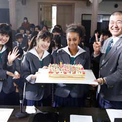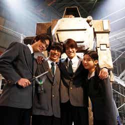 今回解禁となったオフショットでは、齋藤、山下、梅澤の映像研メンバーと気象研究部の晴子を演じた浜辺が並んだ貴重な4ショットや、同作の監督を務めた英勉監督の誕生日を齋藤・山下・桜田ひよりが祝っている様子も。また、連日真冬の寒さが続く中の撮影で、山下、桜田、そして福本莉子が身を寄せ合い暖をとる姿など、現場での和気あいあいとした雰囲気が伝わってくる。また先日劇場公開された『思い、思われ、ふり、ふられ』で親友同士の役を演じた一方で、同作「映像研」では鬼気迫るやりとりを見せた浜辺と福本が仲良くピースをする姿や、小西桜子やグレイス・エマら大・生徒会、板垣瑞生、赤楚衛二らロボット研究部が笑顔で並んだそれぞれの集合写真など、見ていてこちらが笑顔になる写真が満載となっている。さらに、福本演じる阿島が梅澤演じる金森に罵倒され怯えるシーンで、その姿が可愛すぎるとSNS上で話題になっていたが、劇中の犬猿の仲からは想像もつかない、2人が肩を組む仲睦まじい写真など、劇中では見ることのできないオフショットの数々を堪能できる。(modelpress編集部)