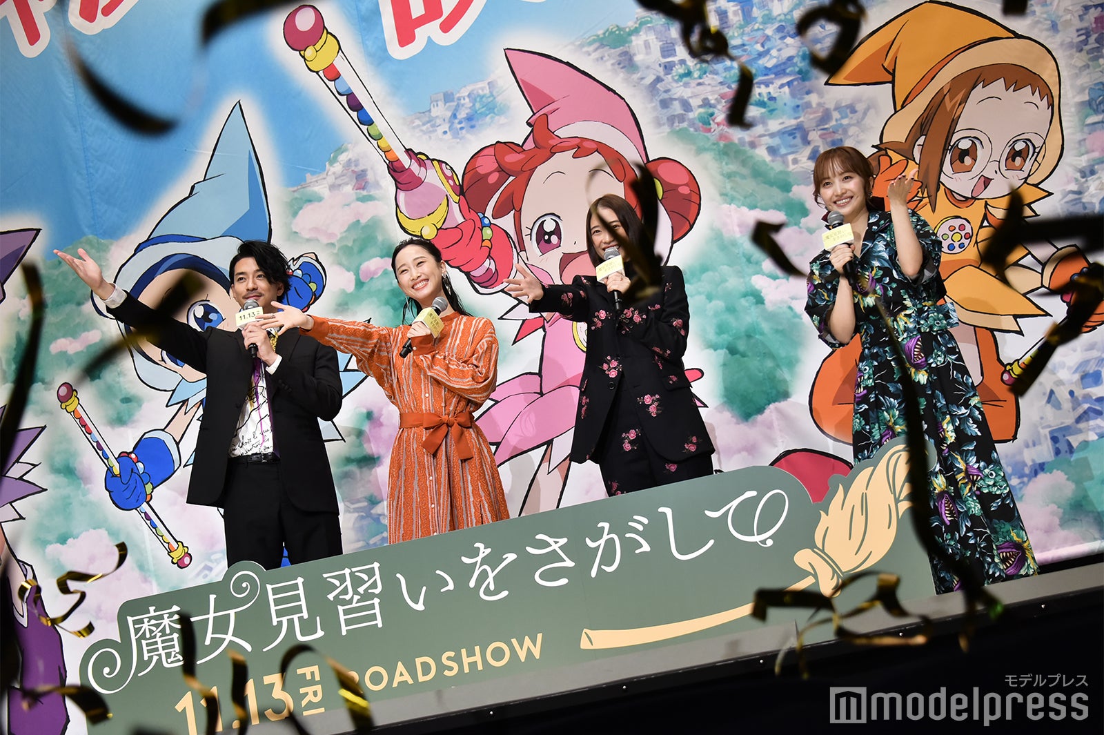 俳優の三浦翔平が1日、都内で行われたテレビアニメ『おジャ魔女どれみ』20周年記念作品となるアニメーション映画『魔女見習いをさがして』(11月13日公開)の完成報告イベントに、声優を務めた女優の森川葵、松井玲奈、ももいろクローバーZの百田夏菜子とともに登壇。“悩んだときの魔法”を明かした。