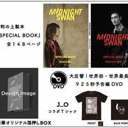 電子版「SPECIAL CINEMA BOOK」に入りきらなかった未収録カットを含む凪沙・草なぎの魅力が満載のグラビア、編集でやむなくカットされたシーンも含む映画の脚本、そして内田英治監督が自ら書き下ろした「ミッドナイトスワン」スピンアウト短編小説が入った上製本に加え、「ミッドナイトスワン」と香取慎吾ディレクションのアパレルブランド「JANTJE_ONTEMBAAR」がコラボしたTシャツの封入も実現。