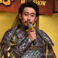 本作は「銀魂」シリーズ、「今日から俺は!!」などの福田雄一がメガホンをとり、中国の歴史書を新解釈で描く。大泉は「蜀」の武将・劉備を演じて福田組に初参戦。ムロは大軍師・孔明役で出演している。この日の会見には小栗旬、賀来賢人、橋本環奈、山本美月、岩田剛典、山田孝之ら出演者12人のパネルが用意され、ズラリと一列に整列した。それを見た大泉は「これだと俺とムロが暇にみえる。2人だけ来られた、みたいな…」と不満そうな表情。さらに「申し訳ないけど高橋努は来られるだろ!あと、このへんは今日本におるんか?」と小栗のパネルを見つめていた。