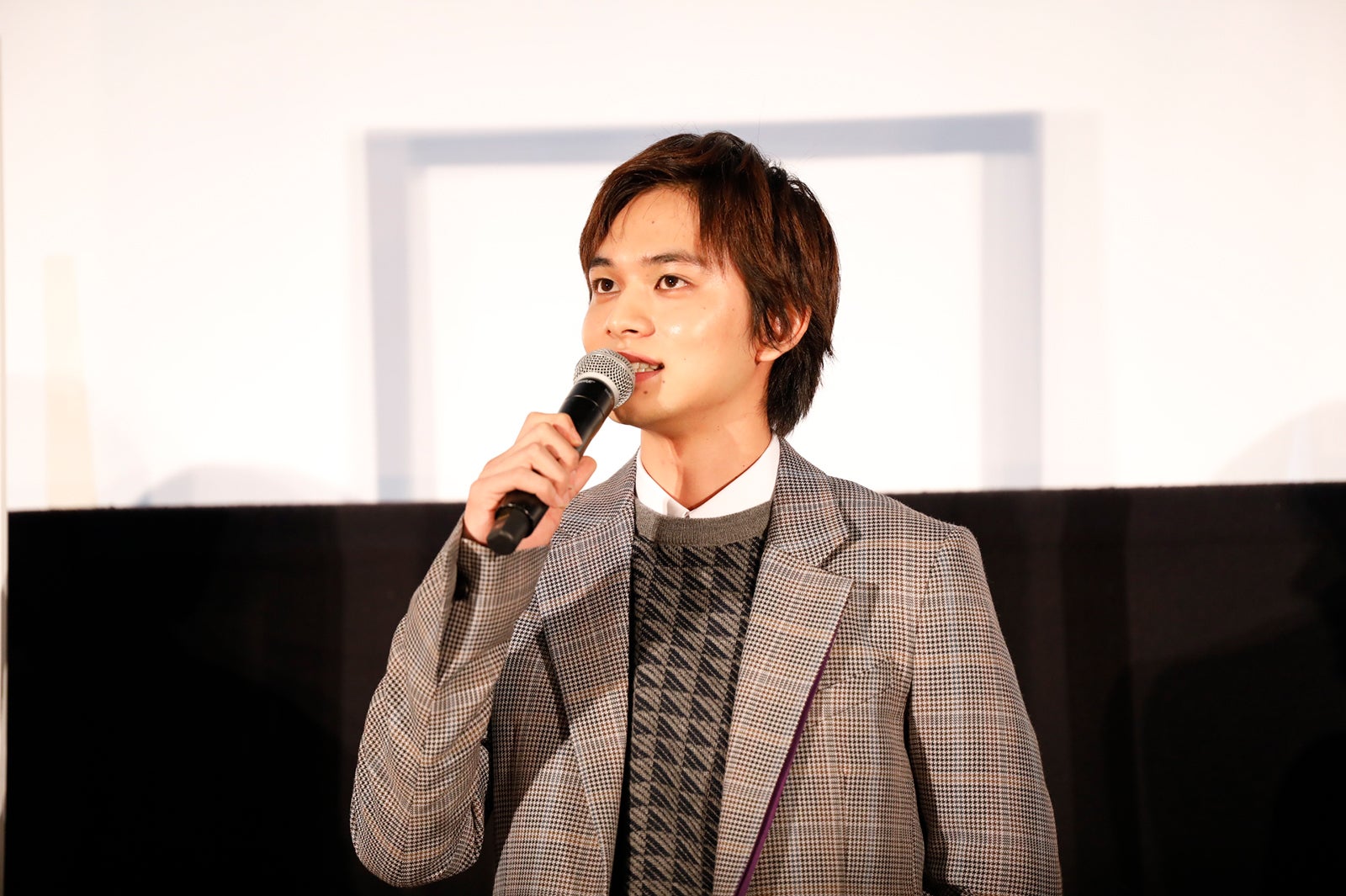 北村は満席の観客席を目にし「遂に、間を空けずに座られたみなさんを前に、舞台挨拶に立ててすごく嬉しいです」と笑顔。小松も「自分が2020年に携わった作品でお客様が入っての舞台挨拶は今日が初めてなので、“ただいま”という安心感を得ています」と、吉沢も「こうやってお客様が入っての舞台挨拶は久々な気がして、少し緊張してますが、楽しんでください」と、それぞれが感激しながら挨拶をした。