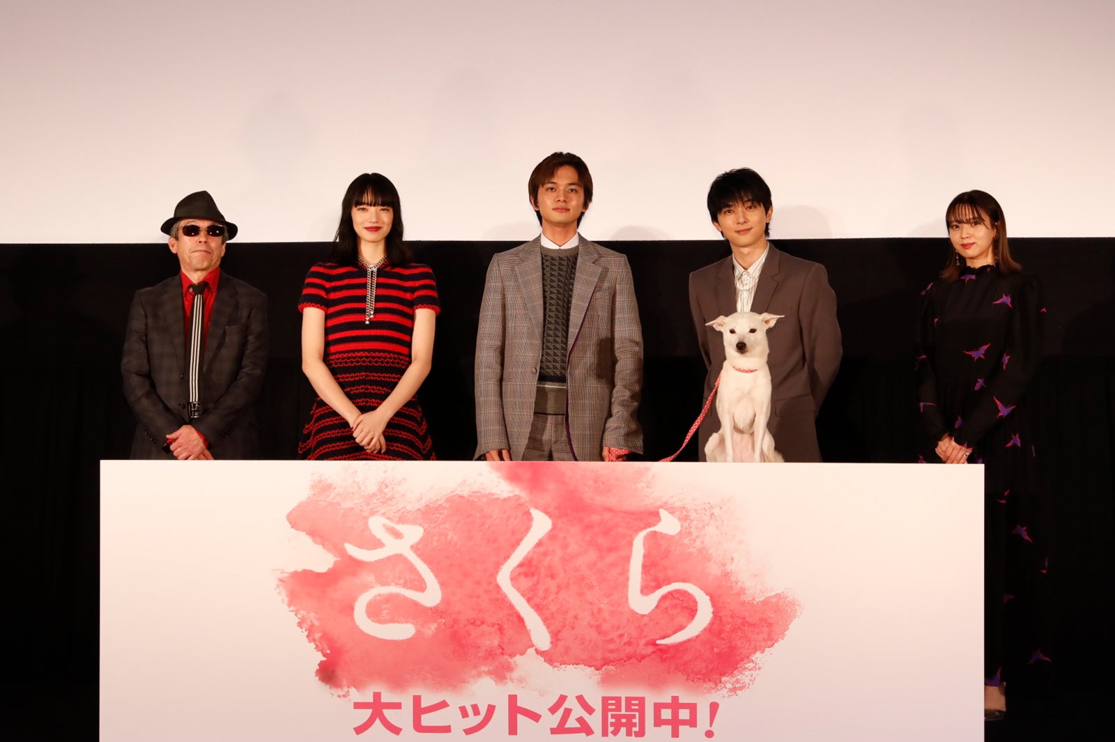 そして、劇中でサクラ役を演じた犬のちえも登壇。兄弟妹のなかでは、吉沢に1番なついていたそうで「今、覚えてくれてるのかわかんないな。ちえちゃん」と呼ぶが、大勢の観客を目の前にして、ちえは緊張気味の様子。吉沢は、ちえとの共演シーンについて「本当にすごかった。彼女の動き1つでシーンが変わる。芝居が上手い。みんなで卒業アルバムを覗くシーンは完璧だった」と感嘆したことを告白。一方、北村からは、「サクラが、僕ら5人を(いい意味で)振り回してくれた。近寄ってきたかと思ったら、すっとどこかへ行っちゃったりして。僕なんかカーストが低いほうで、すぐに亮くんや永瀬(正敏)さんのほうへ行っちゃう(苦笑)。僕は芋をあげないと来てくれなかった」と撮影時のエピソードも明かされた。(modelpress編集部)