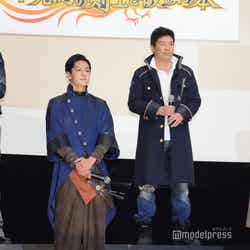 (上段左から)岡宏明、富樫慧士、生島勇輝、井桁弘恵、岡田龍太郎、砂川脩弥、桜木那智、杉原輝昭監督(下段左から)青木瞭、川津明日香、山口貴也、内藤秀一郎、谷口賢志、伊藤英明、高橋文哉、福士誠治、山崎紘菜、中川大輔、鶴嶋乃愛(C)モデルプレス 初の劇場版がいよいよ公開されることに、仮面ライダーセイバー役の内藤は「20分尺なんですけど、体感的に40分くらい観ているんじゃないかというくらい迫力がすごいです。早くみんなに観てもらいたいです」とコメント。仮面ライダーファルシオン役の谷口とのバトルシーンについては、「(テレビ版の撮影では毎回)オーラがすごくて委縮しちゃう部分もありました」と明かしつつ、「変身のとき、笑っているのか怒っているのか、どういう感情なのかわからない芝居を見て、自分ではできないな…と(役者として)負けた気分になっていましたが、劇場版では負けないように頑張ったので見てほしいです」と力を込めた。