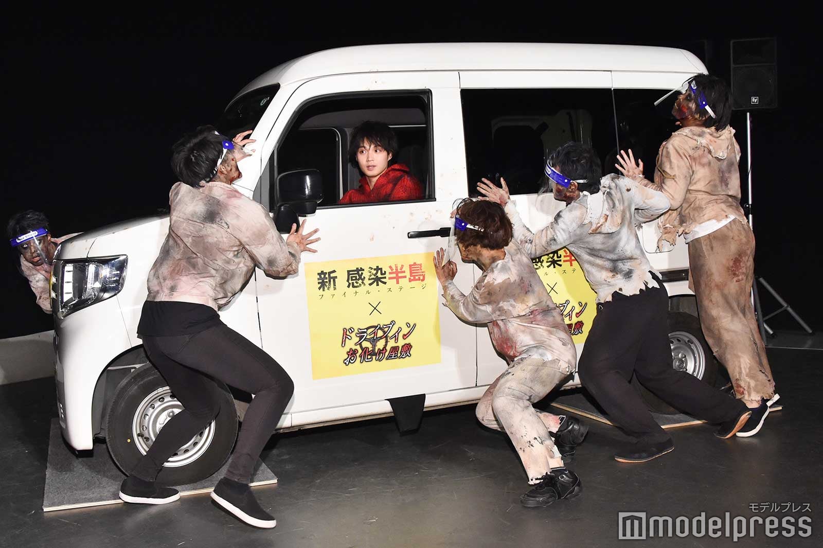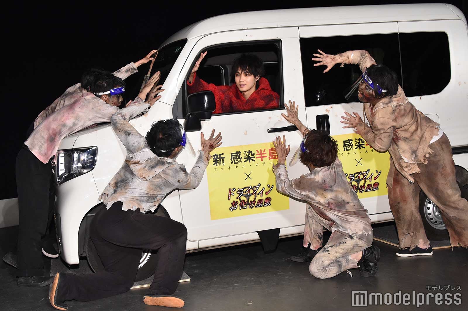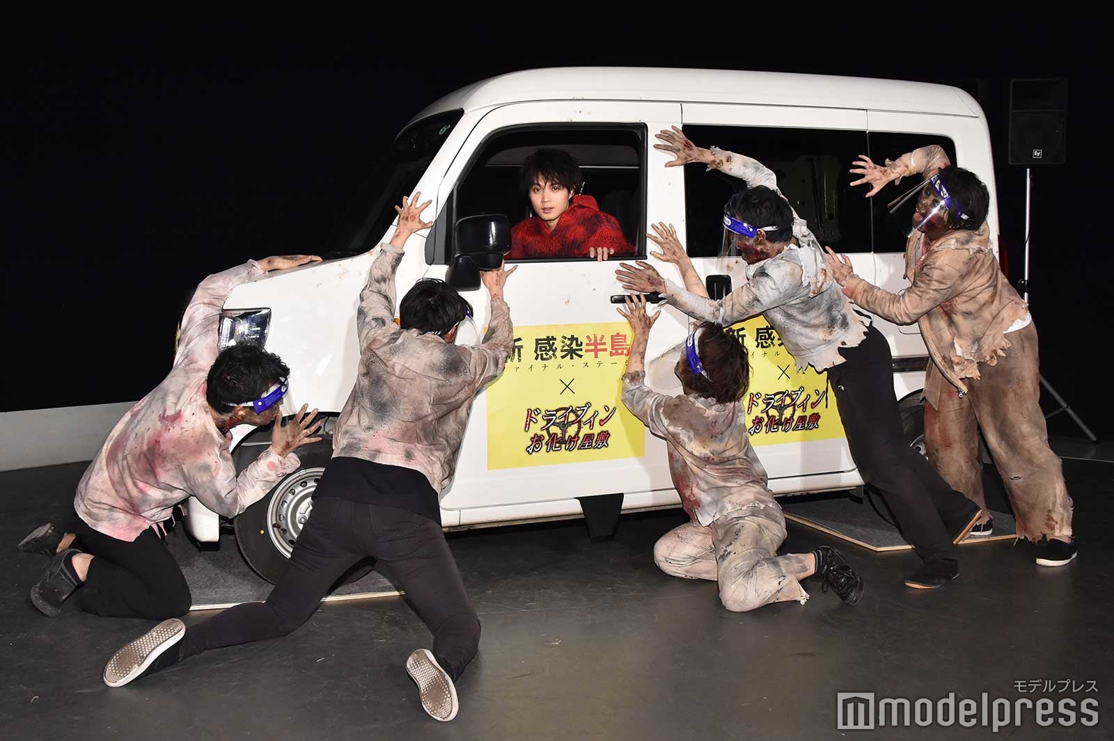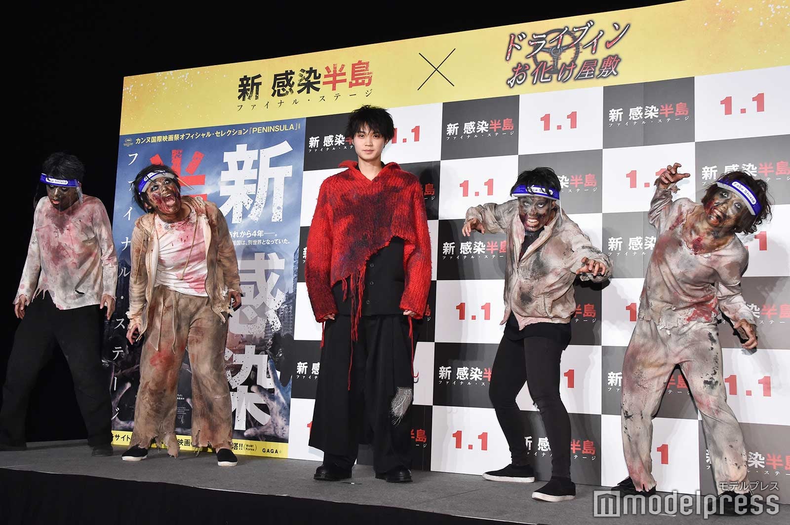 イベント後のフォトセッションでは、フェイスシールドをしたゾンビが磯村を囲む演出で行われ、シュールなソンビの姿に報道陣からは笑いがこぼれた。(modelpress編集部)
