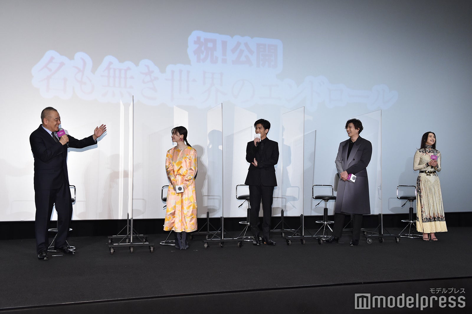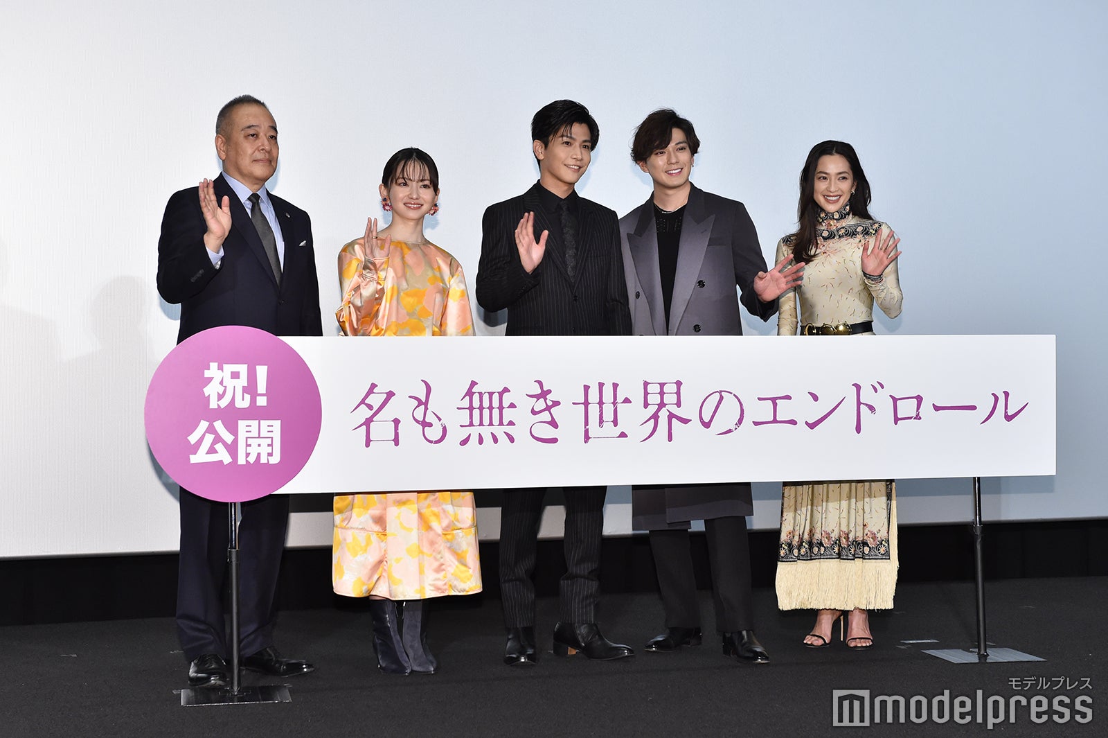 「監督もおっしゃってくださった『ヤクザと家族』『花束みたいな恋をした』、そして自分たちの『名も無き世界のエンドロール』。この3つをぜひともセットご覧いただきたいなと思いますし、こういう時代だからこそ、映画がもっと活気付いてほしいですし、映画館に人が入ってほしいし、感染対策をバッチリにすれば安全だと思うので、映画の時間が皆さんにとって安らぎのひとときになってくれればと思います。言いづらいですけど、ぜひ劇場に遊びに来てください」とライバル作品を含めてアピールした。(modelpress編集部)