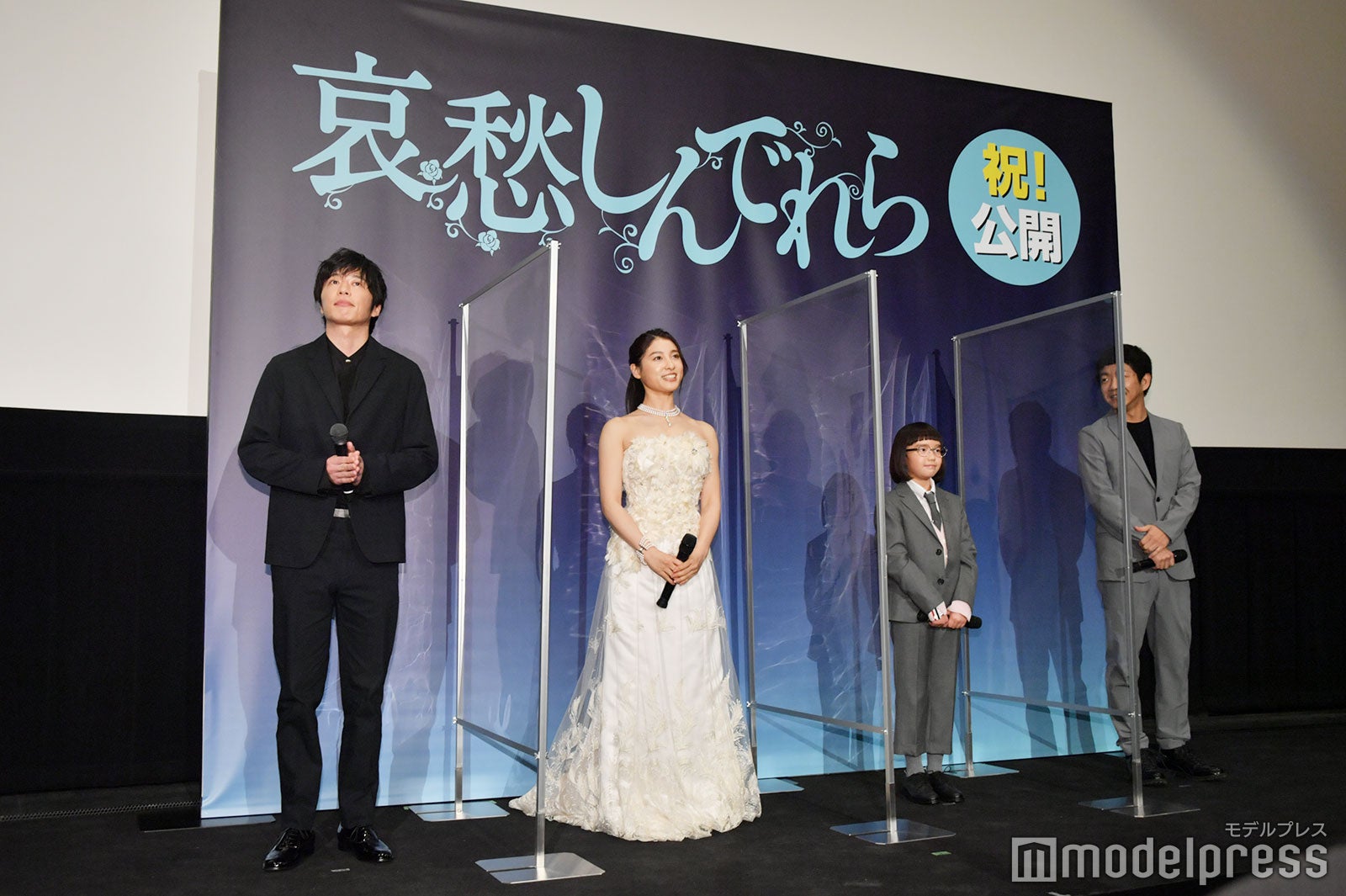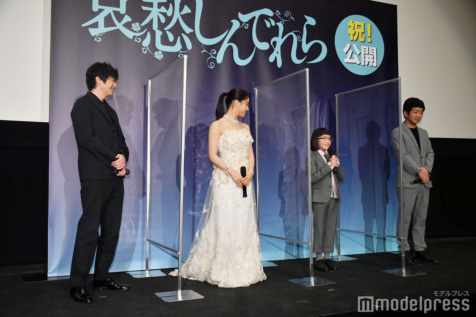 女優の土屋太鳳と俳優の田中圭が5日、都内で行われた映画『哀愁しんでれら』の初日舞台挨拶に、共演のCOCO、メガホンをとった渡部亮平監督とともに登壇した。