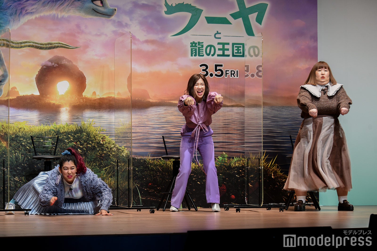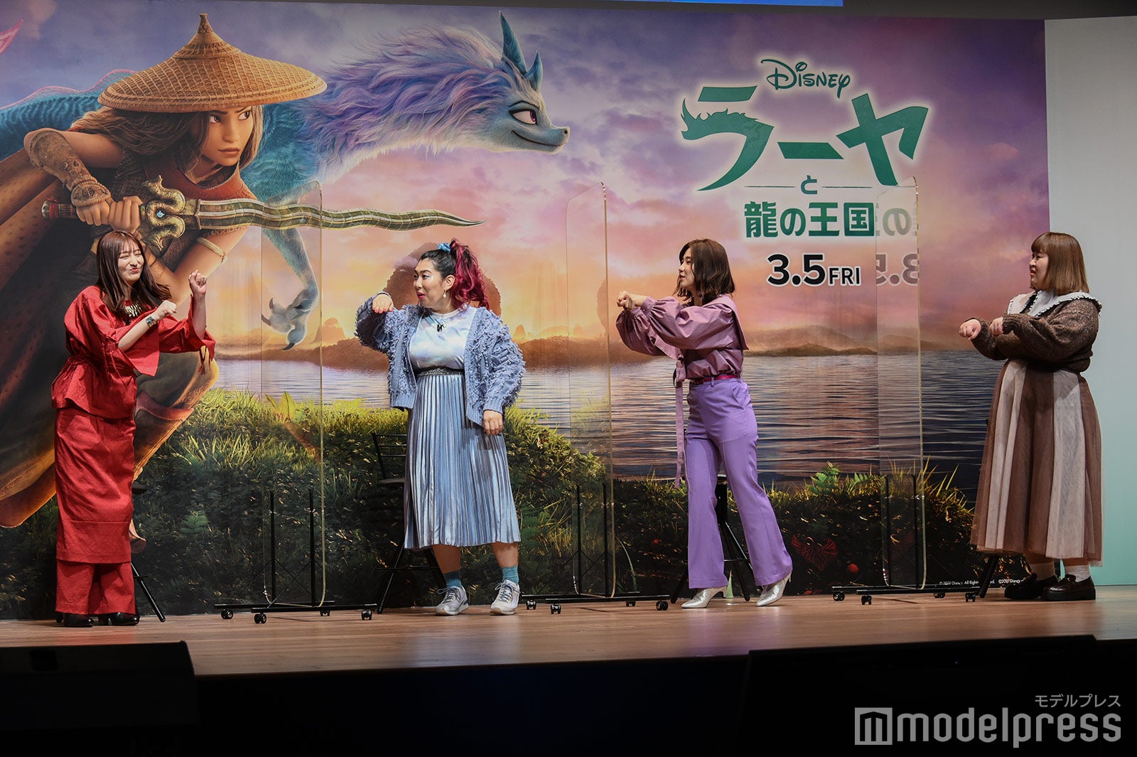 女優の吉川愛が4日、都内で行われたディズニーの最新アニメーション映画『ラーヤと龍の王国』(3月5日公開)のニューヒロイン・ウェルカムイベントにお笑いトリオ・3時のヒロインとともに出席した。