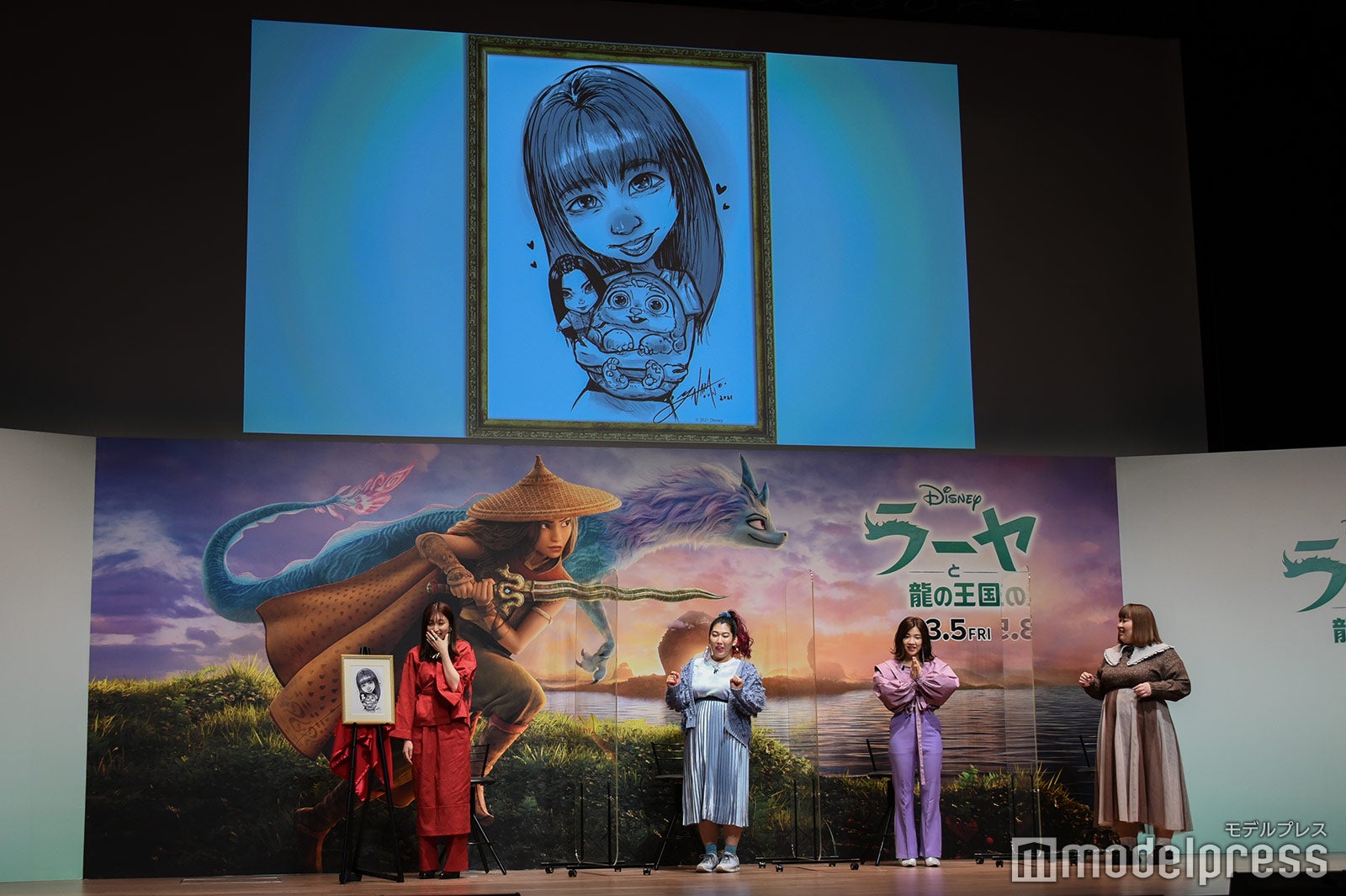 この日、本作のドン・ホール監督、カルロス・ロペス・エストラーダ監督から吉川宛に「ラーヤの内なる強さを見事に表現してくれた」という感謝の言葉と、“特別なプレゼント”が届いた。それはアニメーターが描いた吉川の似顔絵イラストで、思いも寄らないサプライズに吉川は「え〜!やったあ、めちゃくちゃうれしい!家に飾ります」と大感激だった。(modelpress編集部)