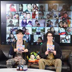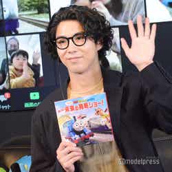 俳優の賀来賢人が8日、都内にて行われた『映画 きかんしゃトーマス おいでよ!未来の発明ショー!』(3月26日より全国公開)絵本読み聞かせイベントに、ジャルジャルの後藤淳平と登壇し、一般公募でオンライン招待された親子連れに向けて『映画きかんしゃトーマス』の絵本の読み聞かせを披露した。