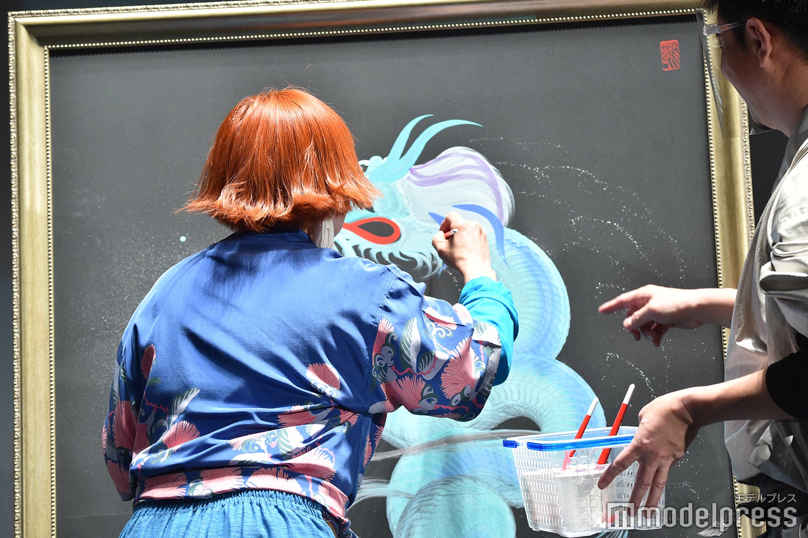 イベントでは、一筆龍絵師の手島啓輔氏による“一筆龍パフォーマンス”が行われ、そのパフォーマンスを見た吉川は「ヤバいですね。私が想像していたものと全然違って、こんなにきれいでかっこよくて、鳥肌が立っちゃうくらい素敵だなって思いました」と目を輝かせ、最後に各キャストが一筆を入れて完成させることになると、吉川は不安げな表情を浮かべ、仕上げの一筆を託された吉川は「1番のプレッシャー…。私、棒人間しか描けない人間なんですけど…。絵がちょっと得意ではないので」と弱腰に。それでも、手島氏にサポートしてもらいながら絵を完成させると「めちゃめちゃ緊張しすぎて、手伝っていただいて(笑)よかったなと思いました。すごいですね」と満足げな表情を浮かべた。(modelpress編集部)
