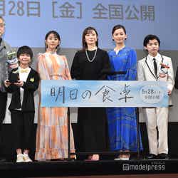 女優の菅野美穂が5日、都内で行われた主演映画「明日の食卓」(5月28日公開)の完成報告会に、共演の高畑充希、尾野真千子、柴崎楓雅、外川燎、阿久津慶人、メガホンをとった瀬々敬久監督とともに登壇。子育ての苦労を語った。