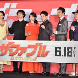 V6の岡田准一が26日、都内で行われた主演映画『ザ・ファブル 殺さない殺し屋』(6月18日公開)の公開直前プレミアムイベントに、共演の木村文乃、堤真一、安藤政信、山本美月、メガホンをとった江口カン監督とともに登壇した。