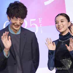女優の芳根京子と俳優の岡田将生が2日、都内で行われた映画『Arc アーク』(6月25日公開)の完成報告に寺島しのぶ、清水くるみ、風吹ジュン、小林薫、メガホンをとった石川慶監督とともに出席した。
