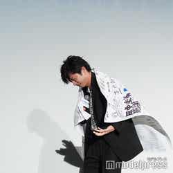その後、田中は「何を言おう。ちょっと待ってくださいね」と言葉が出てこない様子。「みんなは『俺が頼りになるとか、色々言ってくれていますけど、…ちょっと待って無理だよ」と涙。「しゃべれないですよ、無理だ」とうつむいた末、気持ちを持ち直し、作品に掛ける思いや主演としてのプレッシャーがあったことを告げ、「こんなサプライズがあるとは、嬉しいです」と喜びを語った。そして、降壇時、田中は、そのフラッグを背中に纏い、詰めかけた観客に笑顔で手を振っていた。(modelpress編集部)