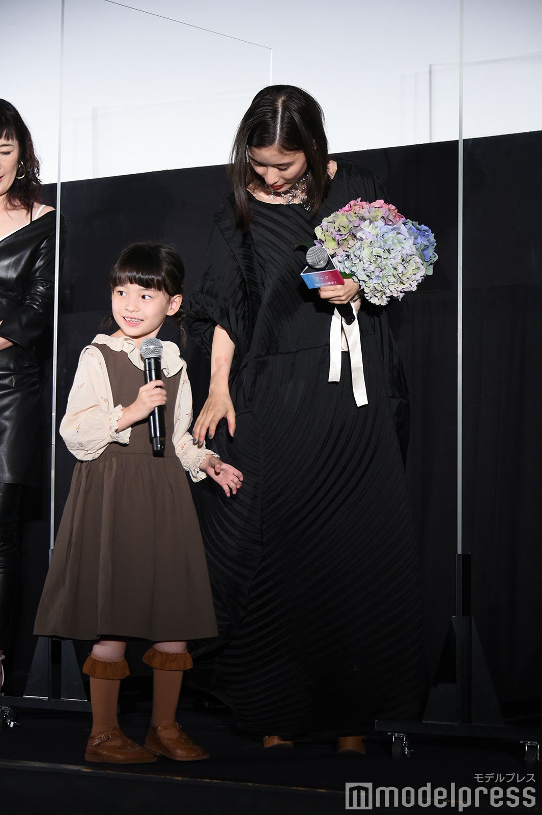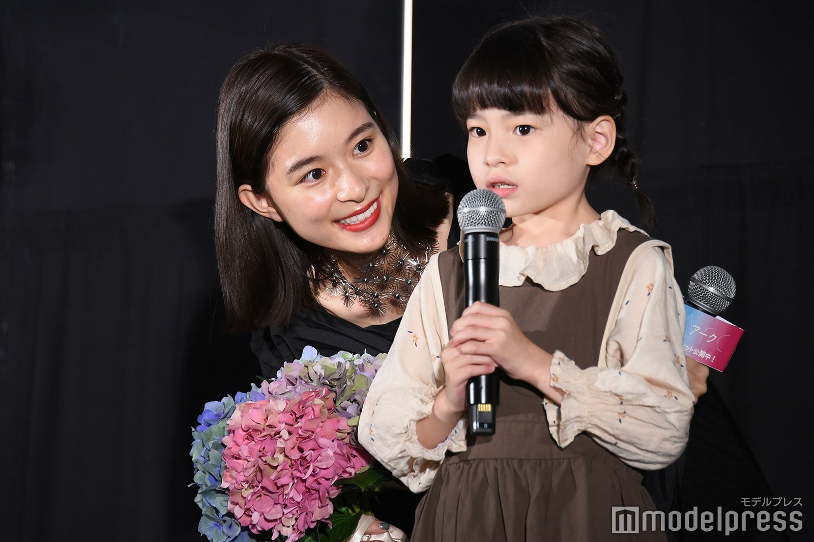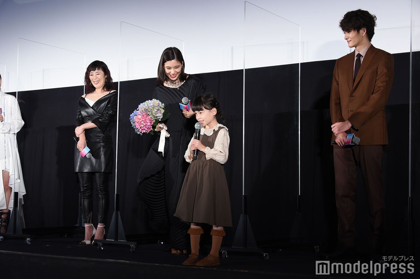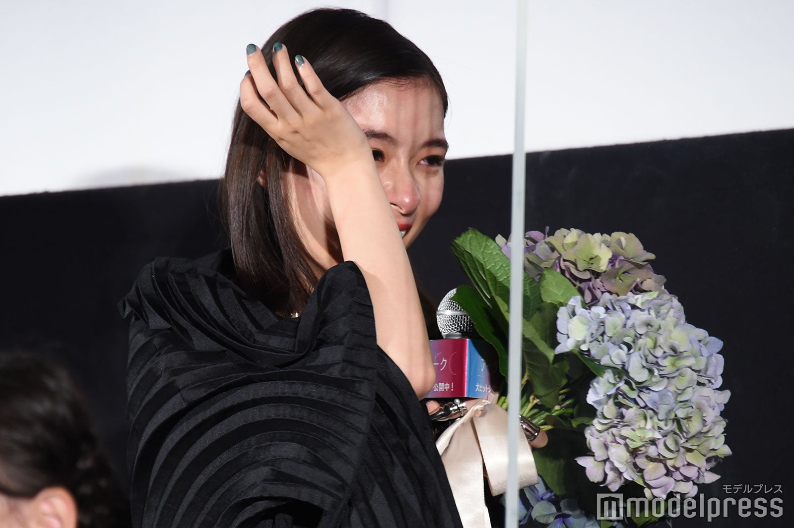 芳根は涙を止めようと上を向いたり、客席に背中を向けて涙を乾かそうと手を扇いだり、試行錯誤していたが涙は止まらず。「お見せできないレベルで泣いている。ちょっとヤバい。咲ちゃんつないで!」と助け舟を求めると、6歳の鈴木が「ちょっとヤバい。ヤバい、ヤバい。なんか面白い」としゃべる場面もあり、会場は笑いに包まれほっこりとなった。(modelpress編集部)