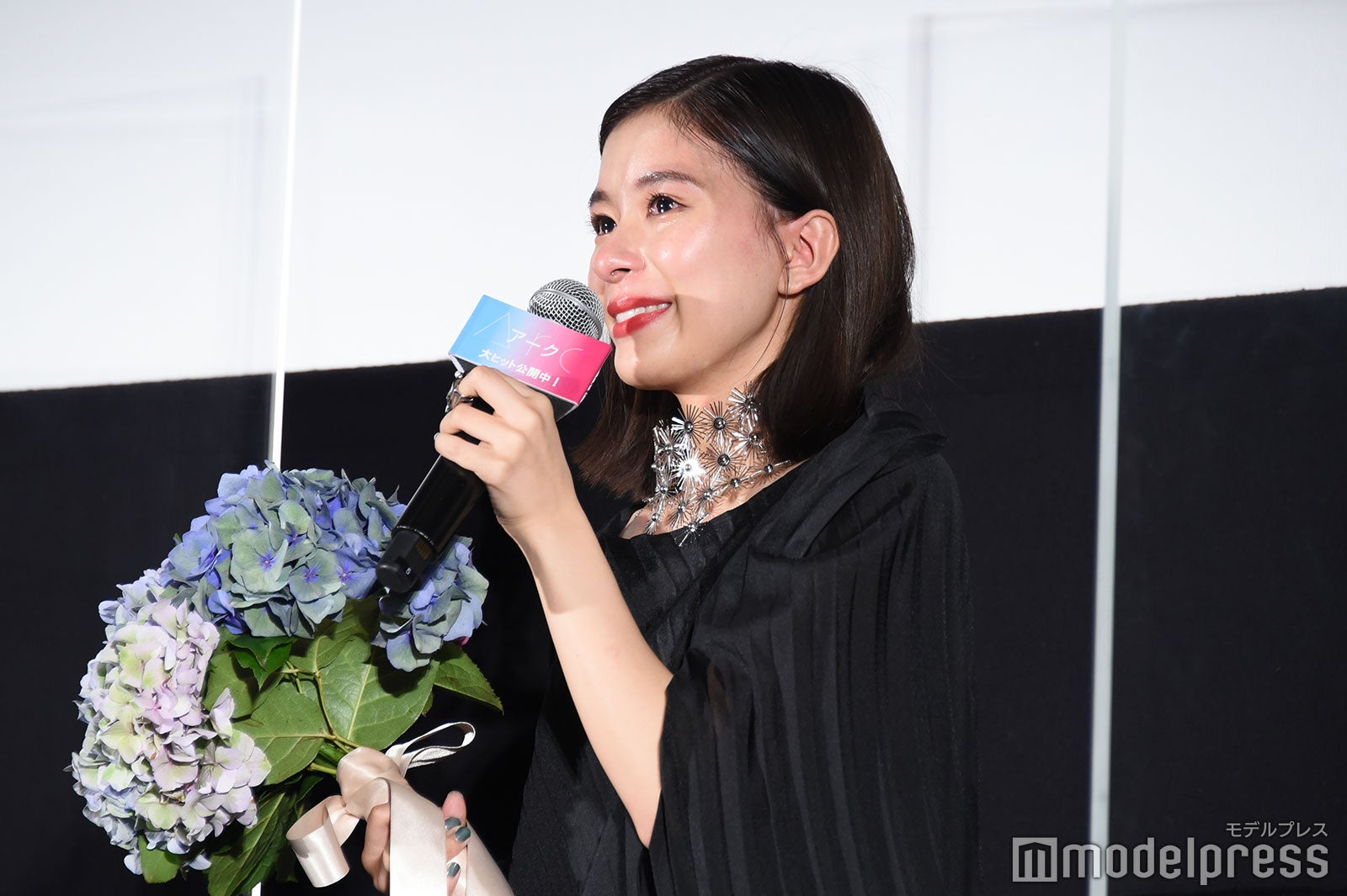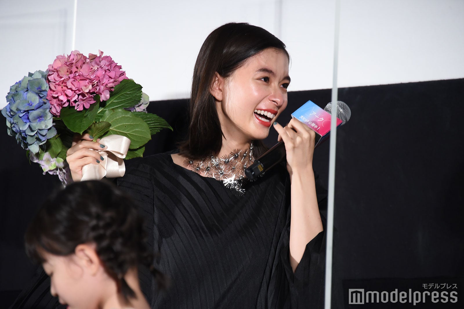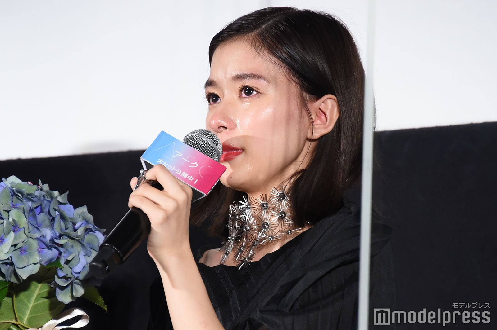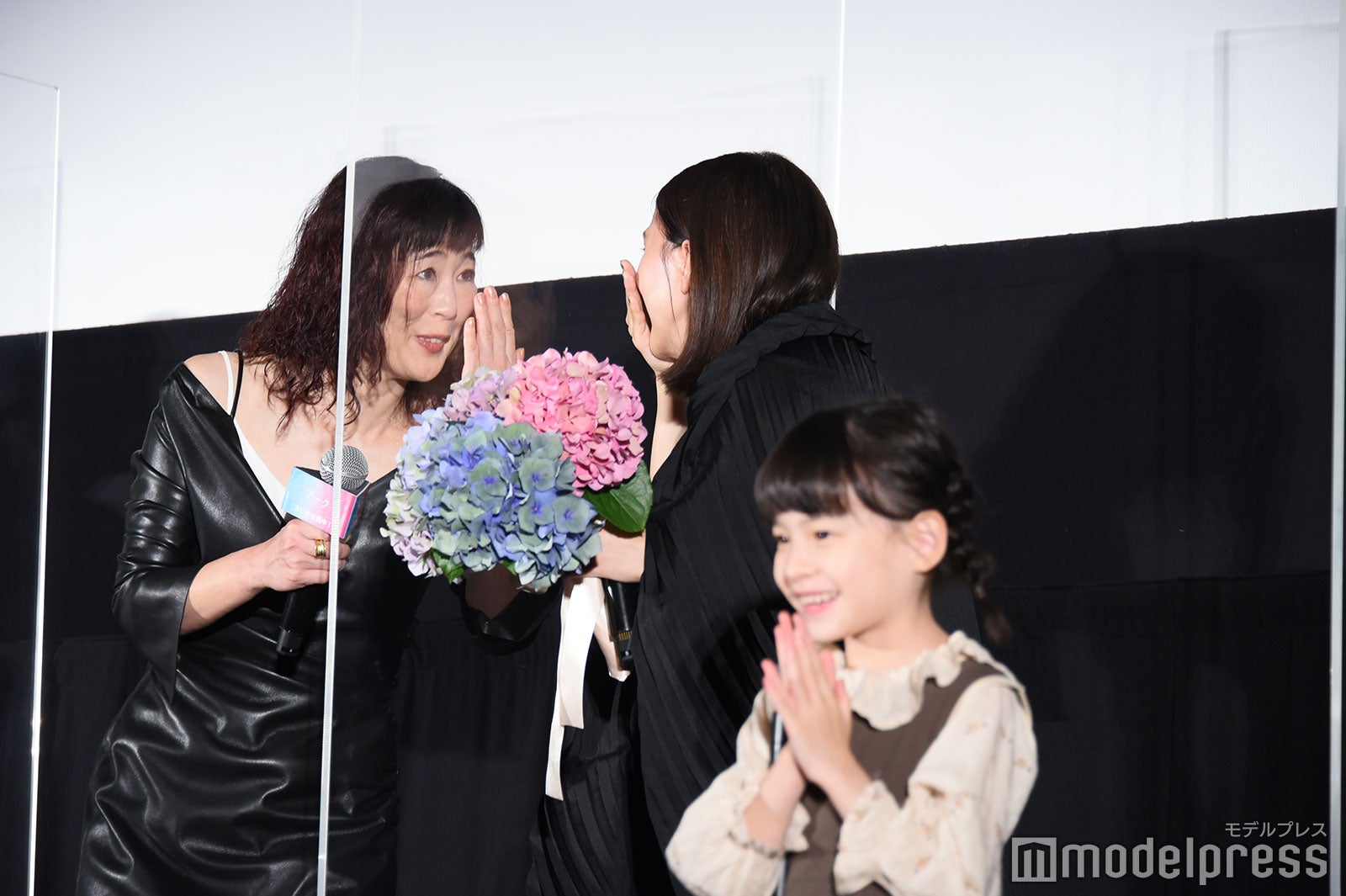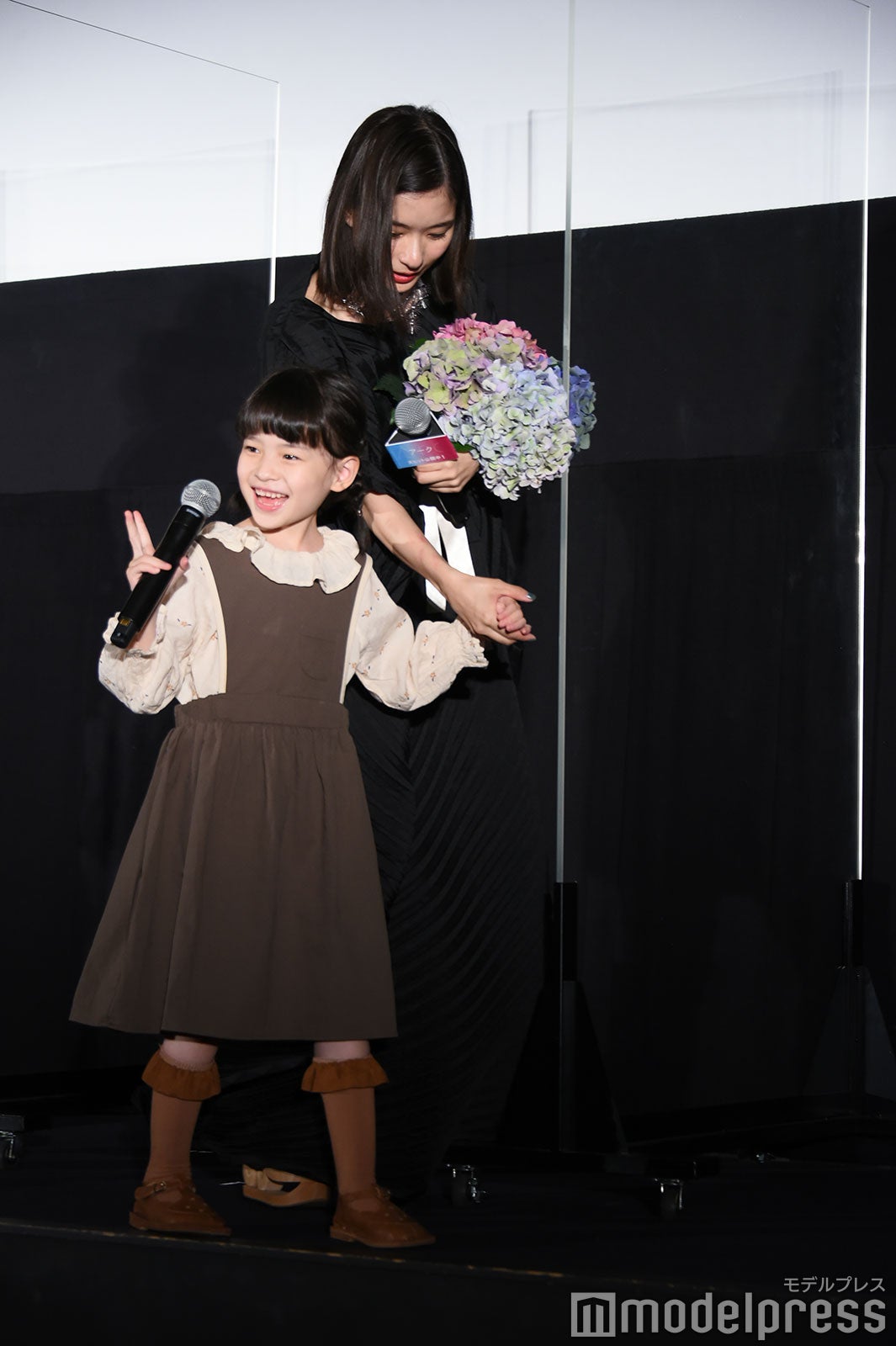 芳根は涙を止めようと上を向いたり、客席に背中を向けて涙を乾かそうと手を扇いだり、試行錯誤していたが涙は止まらず。「お見せできないレベルで泣いている。ちょっとヤバい。咲ちゃんつないで!」と助け舟を求めると、6歳の鈴木が「ちょっとヤバい。ヤバい、ヤバい。なんか面白い」としゃべる場面もあり、会場は笑いに包まれほっこりとなった。(modelpress編集部)