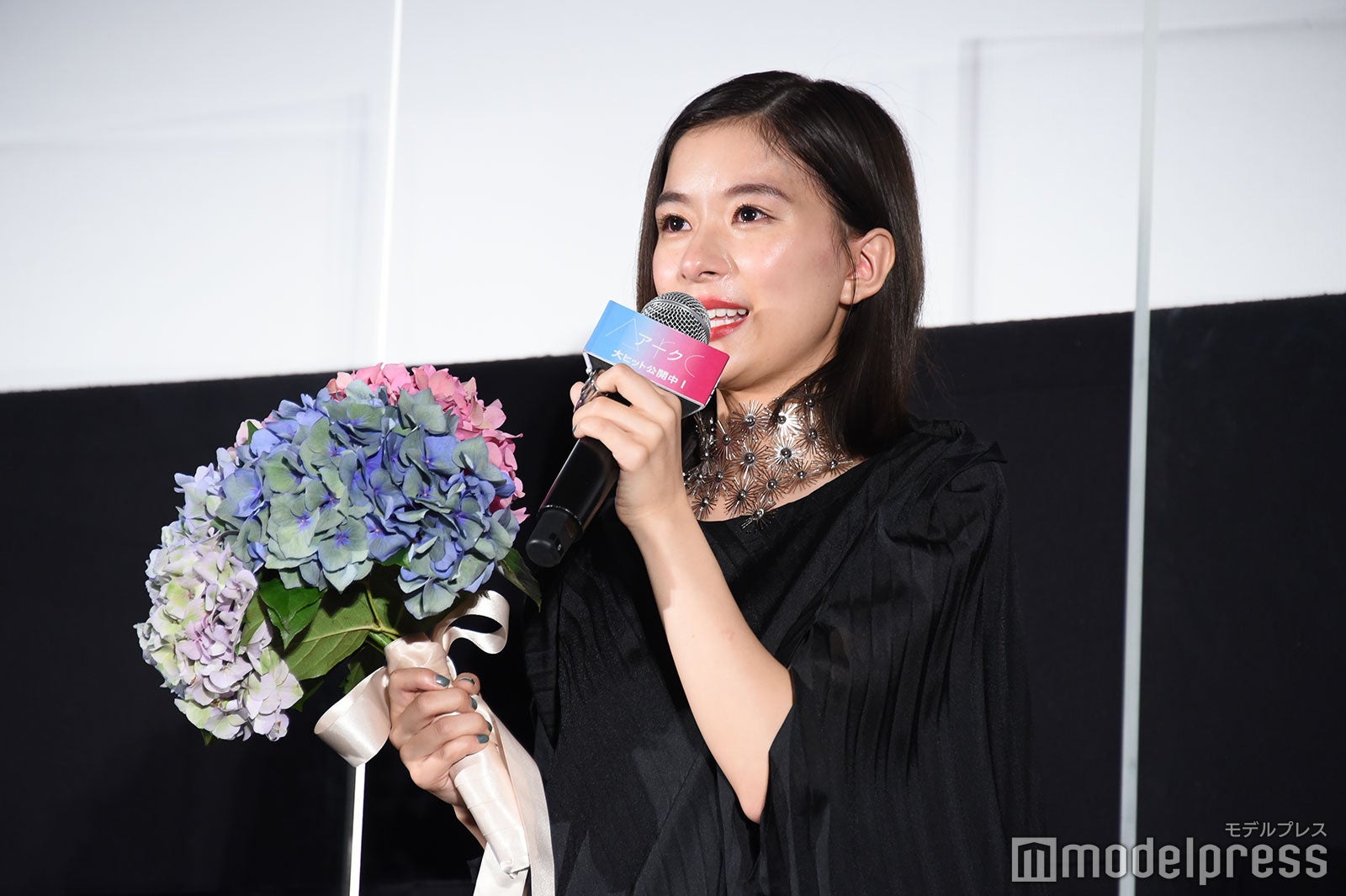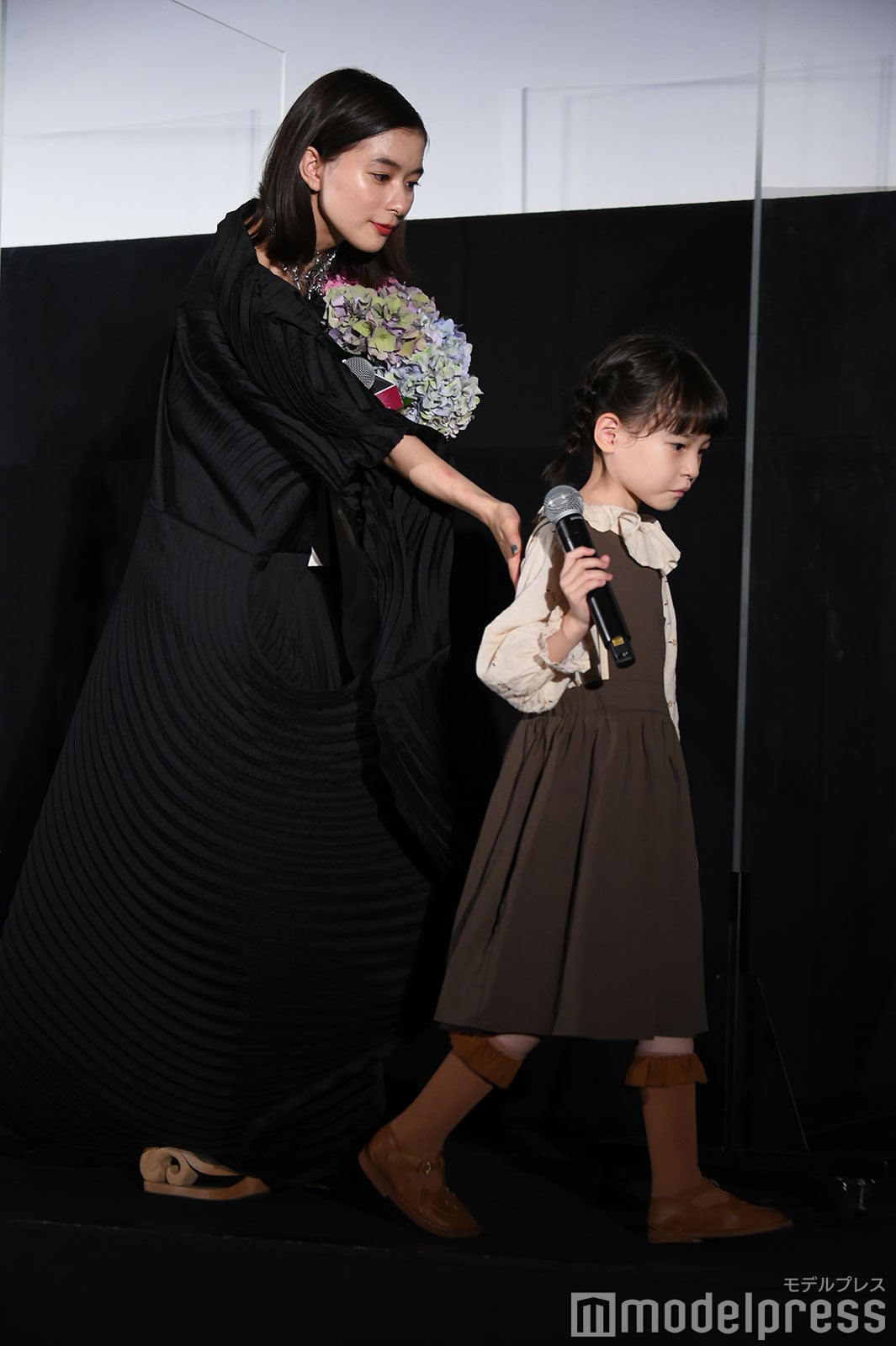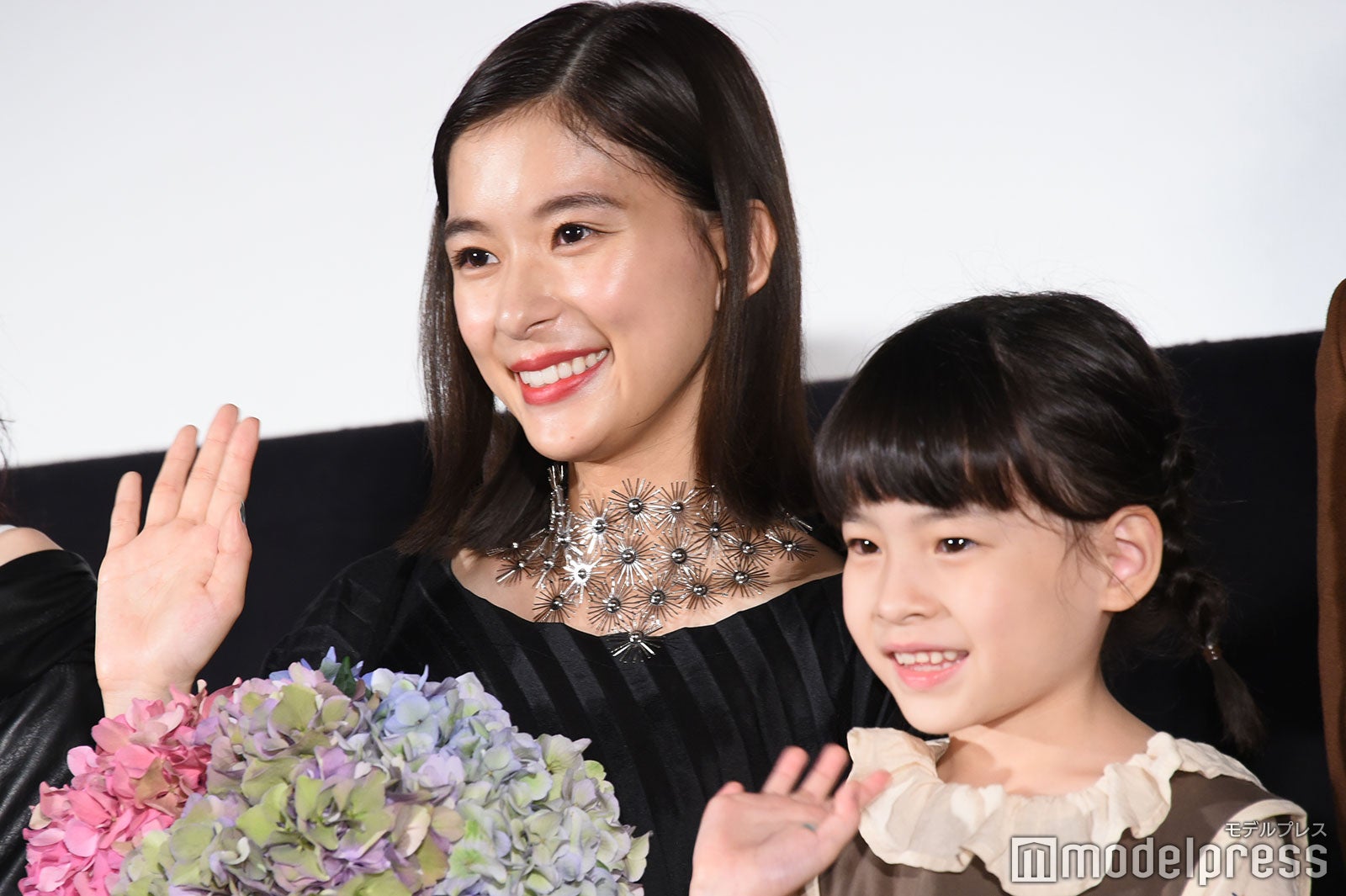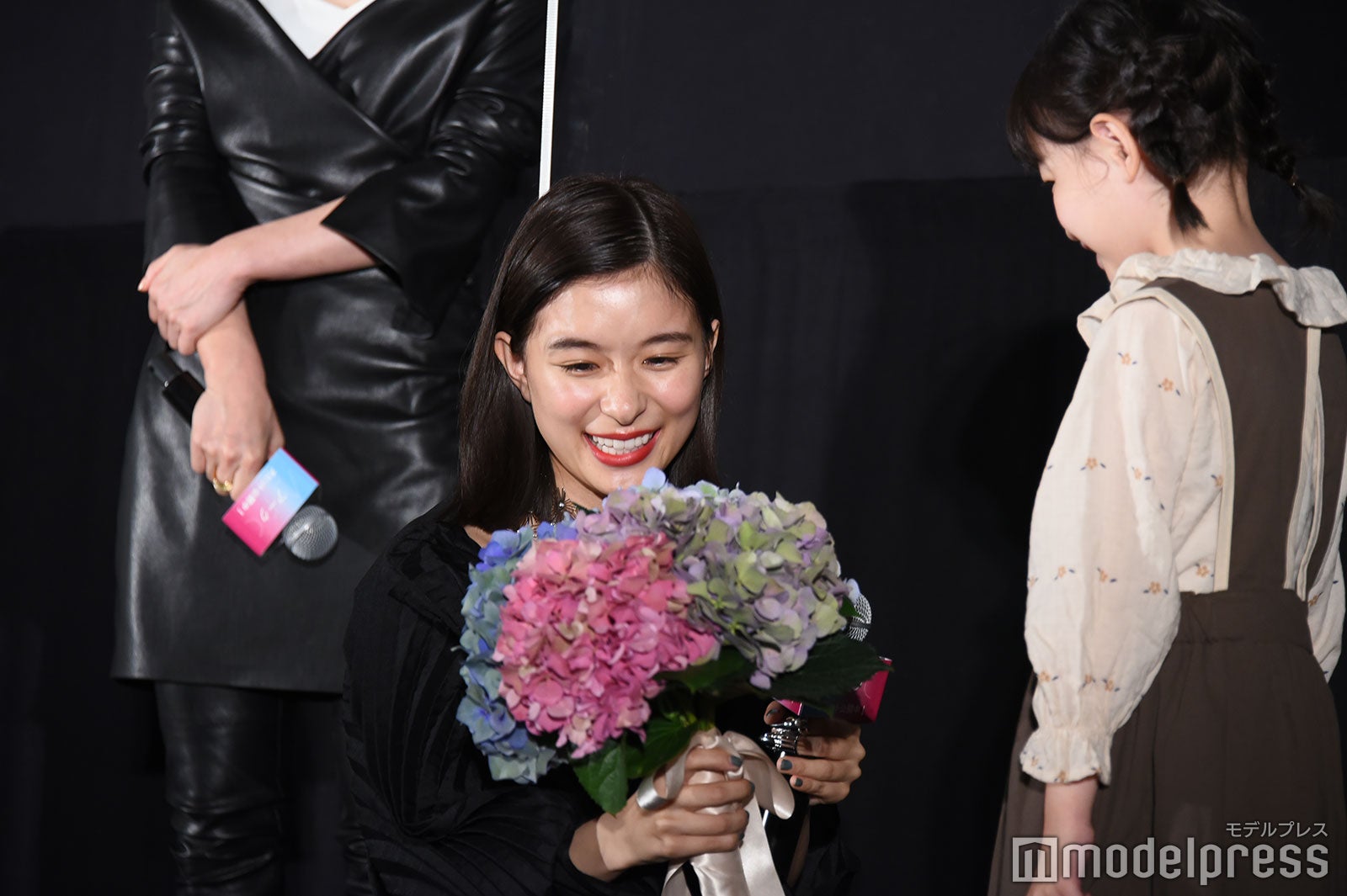 芳根は涙を止めようと上を向いたり、客席に背中を向けて涙を乾かそうと手を扇いだり、試行錯誤していたが涙は止まらず。「お見せできないレベルで泣いている。ちょっとヤバい。咲ちゃんつないで!」と助け舟を求めると、6歳の鈴木が「ちょっとヤバい。ヤバい、ヤバい。なんか面白い」としゃべる場面もあり、会場は笑いに包まれほっこりとなった。(modelpress編集部)