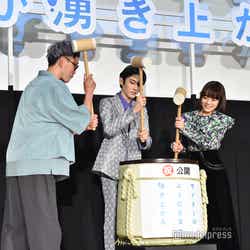 女優の杉咲花が22日、都内で行われた劇場オリジナルアニメーション「サイダーのように言葉が湧き上がる」の初日舞台挨拶に、歌舞伎俳優の市川染五郎、メガホンをとったイシグロキョウヘイ監督とともに登壇した。