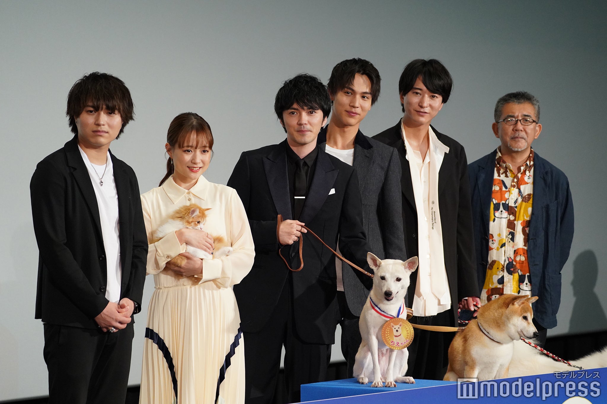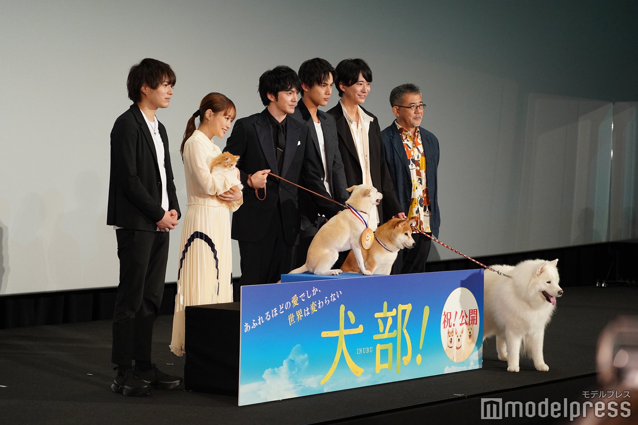 映画『犬部!』初日舞台挨拶が22日、都内にて開催され、林遣都、中川大志、大原櫻子、浅香航大、篠原哲雄監督、竹中雄大(Novelbright)が登壇。林が中川を絶賛した。