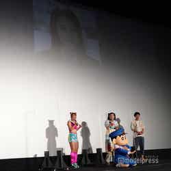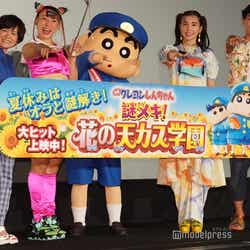 女優の仲里依紗、お笑いタレントのフワちゃんが29日、都内にて開催された『映画クレヨンしんちゃん 謎メキ!花の天カス学園』公開初日舞台挨拶に高橋渉監督(「高」は正式にははしごだか)、声優の小林由美子とともに出席。仲が、高1時代の制服写真を公開した。
