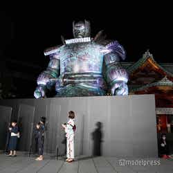 また、「好きな妖怪、会ってみたい妖怪は?」と質問されると、杉咲は「小豆洗い」と回答。「感情によって小豆の洗い方がぜんぜん違って、そんな姿がすごく胸にキュッときます」と笑顔を弾けさせた。イベント後半には、バルーンを利用した全長約10メートル弱の大魔神が神田明神の境内に出現。夜空を背景にそびえ立つ大魔神を見上げ、杉咲は「こんなに大きいとは思わず」と驚きの表情を浮かべ、「かっこいいですね」とため息。