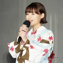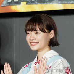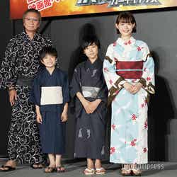 女優の杉咲花が10日、都内にて開催された映画「妖怪大戦争 ガーディアンズ」(8月13日公開)の大魔神復活イベントに、共演の寺田心、猪股怜生、三池崇史監督とともに出演し、浴衣姿を披露した。