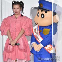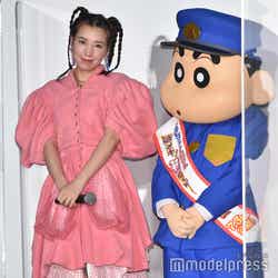 エリートクラス・テン組に在籍するギャル・アゲハを演じた仲は、ステージに登壇すると「本当にしんちゃんの大ファンで、しんちゃんの映画のゲスト出演をずっと狙っていて、どこかにしんちゃんの関係者はいないかと思っていたくらいしんちゃんに出たくて、今回、夢が叶って、しかも私が大好きなギャル役ということで、ダブルで好きなことが叶って、今年、本厄なんですけど、すごくいいことが起きすぎて逆に怖いなという感じです」と嬉しそうに語り、「しんちゃんの映画は大人も泣けて、子どもも楽しめる映画だと思うので、ぜひみなさん、口コミの方をよろしくお願いいたします」とお願いした。また、今作のおすすめポイントを尋ねられると、仲は「大人は誰しもが学生時代を経験して大人になっていると思うんですけど、懐かしさだったり、子どもはもうすぐ8歳なんですけど、これから学校生活でこんなに楽しいことがあるんだよとか、いろいろ伝えられることがたくさん詰まった映画だなと思いました」と感想を語り、「しんちゃんって面白いけど、すごく考えさせられる映画なので、家族で見るのにふさわしい映画だなと思いますね」とアピール。