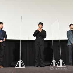俳優の西島秀俊と岡田将生が20日、都内で行われた映画「ドライブ・マイ・カー」の初日舞台挨拶に、メガホンをとった濱口竜介監督とともに登壇した。