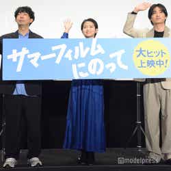 映画『サマーフィルムにのって』(公開中)の大ヒット御礼舞台挨拶が29日、都内にて開催され、主演の伊藤万理華、出演の金子大地、松本壮史監督が登壇。伊藤が、共演者との思い出を語った。