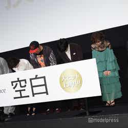 俳優の松坂桃李が23日、都内で行われた映画『空白』初日舞台挨拶に古田新太、田畑智子、藤原季節、伊東蒼、寺島しのぶ、メガホンをとった吉田恵輔監督とともに出席。古田との共演を振り返った。