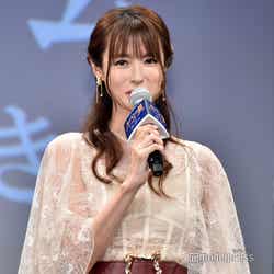 女優の深田恭子が27日、都内で行われた主演映画『劇場版 ルパンの娘』(10月15日公開)の完成披露舞台挨拶に、瀬戸康史、渡部篤郎、小沢真珠、栗原類、どんぐり、大貫勇輔、麿赤兒、観月ありさ、武内英樹監督とともに登壇。深田は今月2日に活動再開を発表後、初の公の場となった。