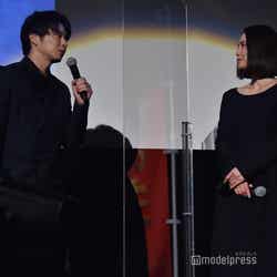 映画『総理の夫』の東京・パリ2都市生中継舞台挨拶が4日、都内で行われ、W主演を務める田中圭、中谷美紀が登壇。原作者の原田マハ氏もリモート出演し、トークを繰り広げた。