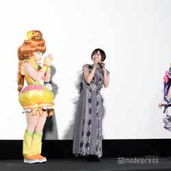 舞台挨拶には「トロプリ」メインキャストのファイルーズあい(キュアサマー/夏海まなつ役)、日高里菜(キュアラメール/ローラ役)、花守ゆみり(キュアコーラル/涼村さんご役)、石川由依(キュアパパイア/一之瀬みのり)、瀬戸麻沙美(キュアフラミンゴ/滝沢あすか役)も出席していた。映画の公開を迎えたことについて、松本は「プリキュアの世界に、お邪魔させていただいている身なのですが、こうやって、2年ぶりの、念願の、公開の披露試写の日に立たせていただいて。なんだか、本当にすごく嬉しいですし、私はプリキュアたちを前にして、すごくドキドキわくわくしています。私が楽しんじゃってます」とコメント。ファイルーズから「トロピカるって言うんですよ」と本作でおなじみの表現を教わると、松本は「言い直してもいいですか?今日はとっても、トロピカってます」と白い歯を見せた。